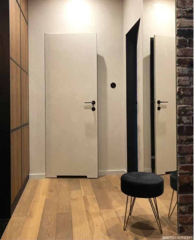 Betonowe drzwi z mikrocementu – zdjęcia z realizacji przy użyciu mikrocementu Festfloor