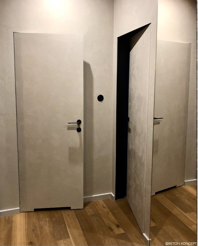 Betonowe drzwi – drzwi ukryte wykończone mikrocementem [zdjęcia]